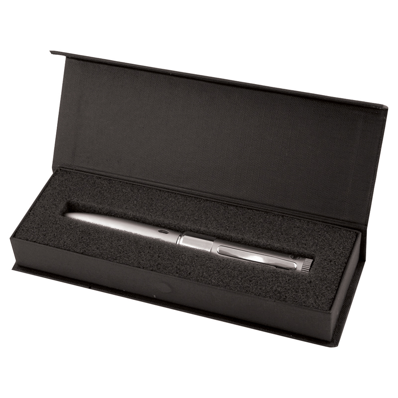 Features: Brushed aluminium and chrome collar, Grade A memory, LED data transfer light, 10 Year warranty on data retention, 1 year replacement warranty on faulty manufacture. Certification: CE, FCC, USB2.0, RoHS. Colours: Silver. Product Size: 145 x 15 mm. Branding Area: 36.5 x 6.5 mm (pad), 30 x 8 mm (laser). Standard Packaging: Tissue Wrap. Price includes: Laser Engrave.
